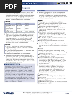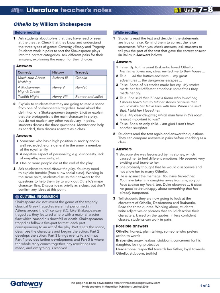 B1 Units 7 And 8 Literature Teacher S Notes Pdf William Shakespeare Othello